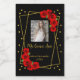 Gold and black Quinceañera with vibrant traditional red roses and classic script typography. Photo template via Pixabay licensed under CC0 and must be replaced with your own photo
