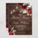 An elegant and modern floral bridal shower invites to participate a bouquet of soft watercolor roses, burgundy in boho shades, with lush green botanical leaves.