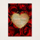 Lovely lush profusion of deep red roses designed on custom Save the Date Chubby size business card. This floral design has an elegant gold heart banner on card front to frame your names and wedding date With lovely mint text art saying Save the Date is available in on other cards and items in my store. Customise names and wedding date on card front.
