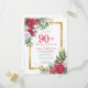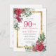 Red Rose Gold Holly 90th Birthday Invitation Postcard