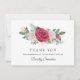 A beautiful and elegant thank you card designed especially for a 100th birthday party. It features a large floral spray of red white roses nestled in holly, eucalyptus and berries. Two lines are provided for a customised thank you and the birthday woman's name. This item is part of the Rose and Holly Collection.