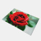 Magnificent red rose with morning dew drops. Beautiful red rose flowering in the garden. The red rose symbolises love, passion, romance and devotion.