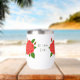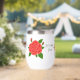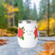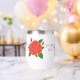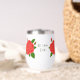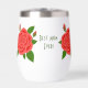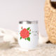 A thermal wine tumbler with beautiful red roses with buds and leaves. The background, image and text can be personalised. Original artwork by W.B.