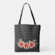 A large red rose on black background with white polka dots is a fun way to carry all your essentials, your groceries, books and more. CHANGE the background colour to anything!