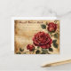 An absolutely stunning thank you postcard featuring red roses placed on old parchment paper with faded text. Romantic, a bit Gothic, like something out of a fairy tale.