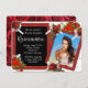 Red rose Quinceanera invitation with pretty red rose background, ribbons and bows with place for your photo. You can easily customise this elegant red rose birthday party invitation for your event by adding your details in the font style and wording of your choice. This is a printed design with no real jewels, glitter, etc.