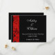 Save the Date Card is shown in a classic formal layout in the colour black with white text and script text highlighting the Bride and Groom names and accented with red roses with a soft glow. Customise this wedding invitation by clicking on the customise button,go to the right to the text boxes and change the appropriate text to yours. Wedding planning Tip: After your save the date card, follow up with an Invitation to coordinate your look.