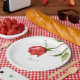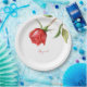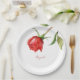 Custom Personalised Red Watercolor Rose Stem Wedding or Shower Paper plate. Bridal Shower. Wedding Reception. Red floral. Red text.