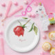 Red Rose Stem Personalised Name Bridal Shower Paper Plate
