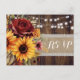 Red Rose Sunflower Rustic Wedding RSVP Postcard