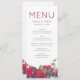 Red Rose Wedding Menu with simple modern typography and romantic floral design. The template is set up for you to personalise with your set menu or meal options. Beautiful rich botanical theme with watercolor border of red roses, eucalyptus leaves and greenery. If you would like this design for matching products, please message me.