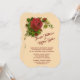 Romantic wedding invitation done in a parchment look, with vintage artwork of a lovely red rose, in the top left corner. Personalise the dark red coloured text for your wedding celebration. Matching products are available.