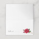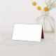 Folded place cards with red roses design. Fold white cards to stand at a place setting, or use the "table number" text provided to use them as escort cards. Simply delete the black text to order blank and then hand write in each guest's name. A single red rose, with buds, and greenery on a stem, is the image at the bottom right. Back / inside of cards are solid, dark red.