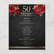 Adult birthday celebration red roses and chalkboard texture event menu. Easy to adjust to the year and menu items.