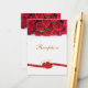 Bouquet of red roses and joined hearts Wedding Reception business card.