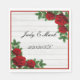 Red Roses And Pine Branch Christmas Wedding Napkin