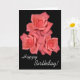 Three red roses on black backgprund. Happy Birthday greeting card. Might be giving for ANY occasion: father’s day, Mother’s day, BD, Anniversary, sweet 16, Invitation - you name it. Inside, on left side, it reads: “May your special day be filled with memories and flowers, friendship and happy hours”. On right side it read: “Happy Birthday”. On back another image of a single red rose on black background. Masculine design, this card is suitable for giving to a man or to a "drama queen" - or anyone you wish. Customise it by changing background colour and/or greeting text.