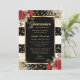Red Roses Black Gold Confetti Floral Quinceañera Invitation