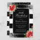 Red Roses Black Silver Confetti 80th Birthday Invitation