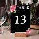 Black wedding reception table number with red roses. Personalise it with your event details. Change number for each table you have.