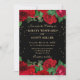 Elegant Red Watercolor Roses clipart with gold glitter and diamonds on black background