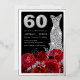 Red Roses Diamond Dress 60th Birthday Silver Foil Invitation