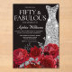 Red Roses Diamond Gown 50th Birthday Party Black Acrylic Invitations