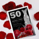 Red Roses Diamond Gown 50th Birthday Real Silver Foil Invitation