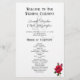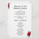 Flat paper wedding program with text on both sides. Realistic, red roses decorate white paper with black text. Names of the couple are held together with a large "and" sign in light grey. Use this template for a longer service / church service, as it gives the couple more space for names and ceremony text. This paper is affordable and easy to customise for any wedding ceremony.