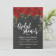 A beautiful red roses floral/boho design bridal shower invitation with a chalkboard effect background and reverse side. Easy to edit or delete the available text fields to personalize the information with your own details for a professional and custom finish. Please visit my shop to see the full range. Lots of matching items in this boho collection.Stickers and address labels also available, amongst other items, as well as other variations on the invitation design.
