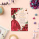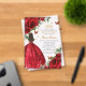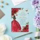 Personalise this boho chic vibrant red floral Quinceañera / Sweet 16 birthday acrylic invitation easily and quickly. Simply click the customise it further button to edit the texts, change fonts and fonts colours. Featuring bright red roses, butterflies and a girl dressed in a glittery red ball gown. Matching items available in store. (c) Somerset Fine Paperie