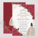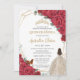 Red Roses Floral Champagne Dress Girl Quinceañera Invitation
