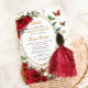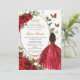 Red Roses Floral Dress Gold Quinceañera Sweet 16 Invitation