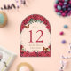 Red Roses Floral Gold Quinceañera 16 Table Number