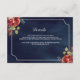 Red Roses Floral Navy Blue Wedding Details Enclosure Card