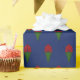 Red Roses Geometric Pattern on Blue Wrapping Paper