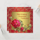 Elegant red roses with gold swirls red and gold 50th wedding anniversary party invitation.