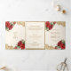 Red Roses Gold Lace Cream QR Code Photo Wedding Tri-Fold Invitation
