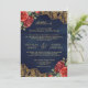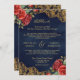 Red Roses Gold Lace QR Code Navy Muslim Wedding Invitation