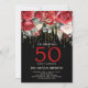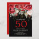 Red Roses Gold String Light Black 50th Anniversary Invitation