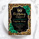 90th Birthday Party Invitation. Elegant floral emerald green design with faux glitter gold and roses. Features leopard cheetah animal print and script font. Perfect for a stylish womens bday celebration. Can be customized for any age! Printed Zazzle invitations or instant download digital printable template.