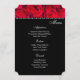 Menu Card made to coordinate with Red Roses Wedding Invitation is of 110 lb. weight paper shown in Black with Photo of Red Roses and a delicate pin dot border trim. Script and standard text in White.