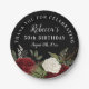 Custom Red and White Roses on Black Background Fiftieth Birthday Party Paper Plates - Add your name, age being celebrated, and date of the birthday party. A modern girly design that pairs a decorative bold font with handwritten calligraphy and is topped off with a red rose floral graphic.