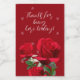 Wedding wine labels with red roses. Use for large or small, personal wine bottles to thank guests at the reception. Three red rose stems with green leaves decorate white labels with black text. Include “thank you” with names and date. Each line is a template so use as you wish. Little pink hearts cover the background.