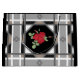 Red roses , retro , gift , greeting , illustration , red , black , grey , patchwork , flowers , floral pattern