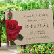 Save the date wedding announcements with red roses design. Kraft paper is shown with black text and simple lines to customise. Include names at the top, with "please save our date". Date of marriage is numeric in large numbers. Also include the venue name and location, with "formal invitation to follow" wording at the bottom. As a digital save the date, share it easily online. See the instant download option.