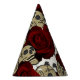 Red Roses & Skulls Black Floral Gothic White Party Hat