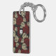 Red Roses & Skulls Grey Black Floral Gothic Key Ring