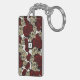 Red Roses & Skulls Grey Black Floral Gothic White Key Ring