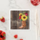 Quinceñeara birthday party custom paper napkin with beautiful red roses and sunflowers in cowgirl boots on a rustic wood background. Personalise with your name and party date.